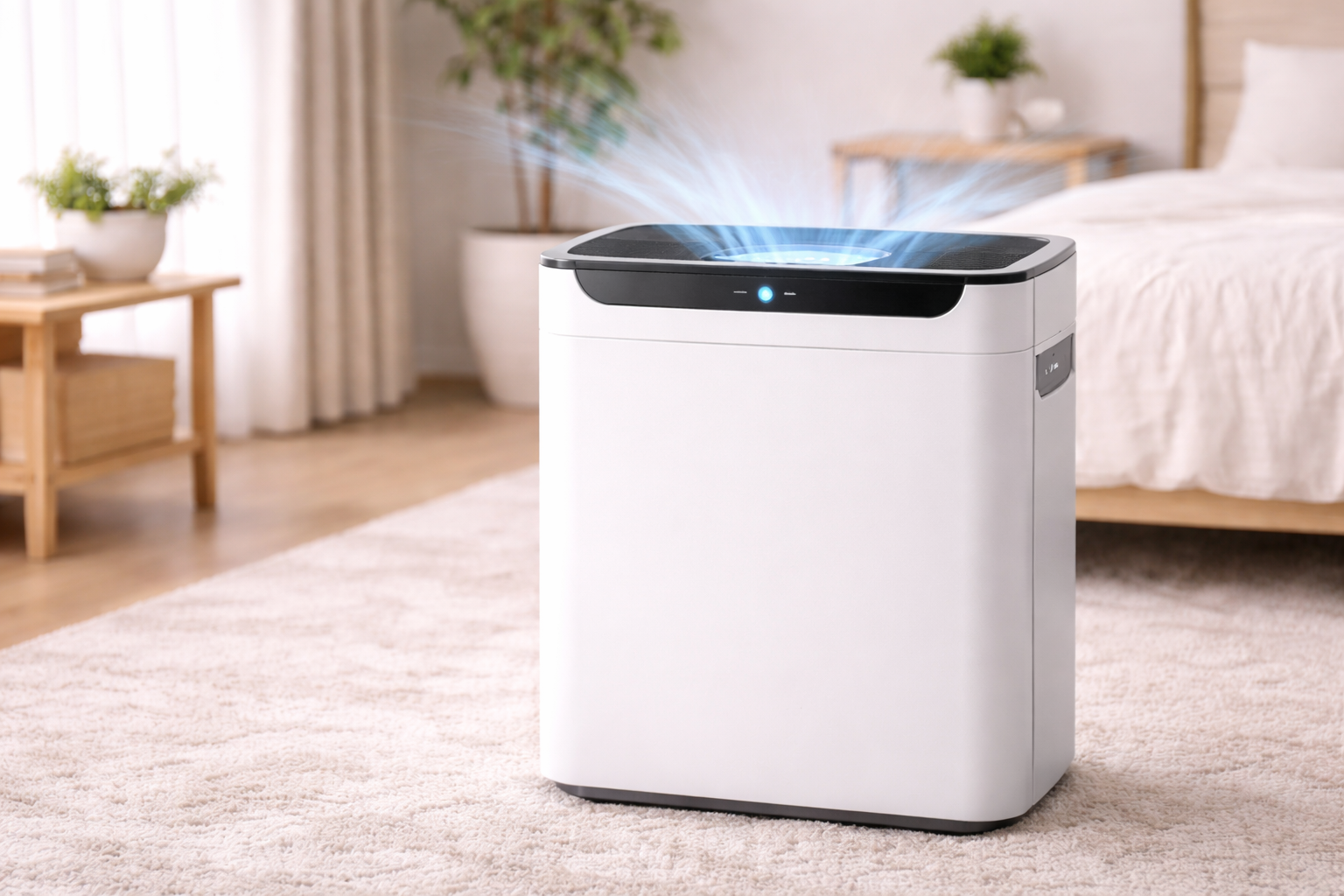 お部屋の空気をきれいにするために、空気清浄機を使うのも良い方法です。すべてのお部屋に置くのが難しい場合は、寝室や子ども部屋などに設置するだけでも効果が期待できます。